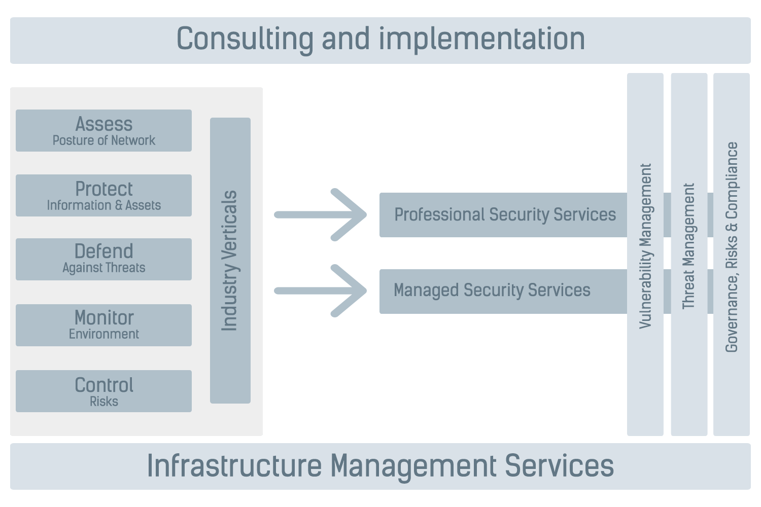 iProtecs Security Services aims to be a trusted advisor to its clients for both security strategy and execution. Our scalability and delivery models are complemented by our Infrastructure Management Services (IMS)business. The Security Services Practice leverages this pillar, and provides specialized Professional Security Services (PSS) and Managed Security Services (MSS) to help clients address areas such as Governance, Risk, and Compliance (GRC) and Vulnerabilities and Threat pain points from their infrastructure.